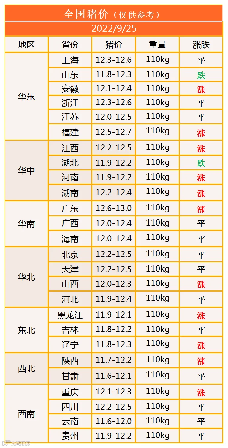 明日猪价2022年9月25日猪价信息