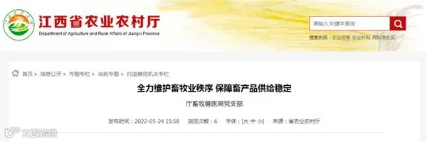 近日,江西省农业农村厅发文,狠抓畜牧业稳产保供。文件表示,落实“菜篮子”市长负责制,推动落实加大信贷和财政支持、猪肉收储等救助政策措施,公布第一批616家国家级、省级生猪产能调控基地,安排能繁母猪一次性补贴7000万元,严格实行生猪基本产能保护制度,强化监测预警、分级调控和服务指导,切实稳定生猪生产。