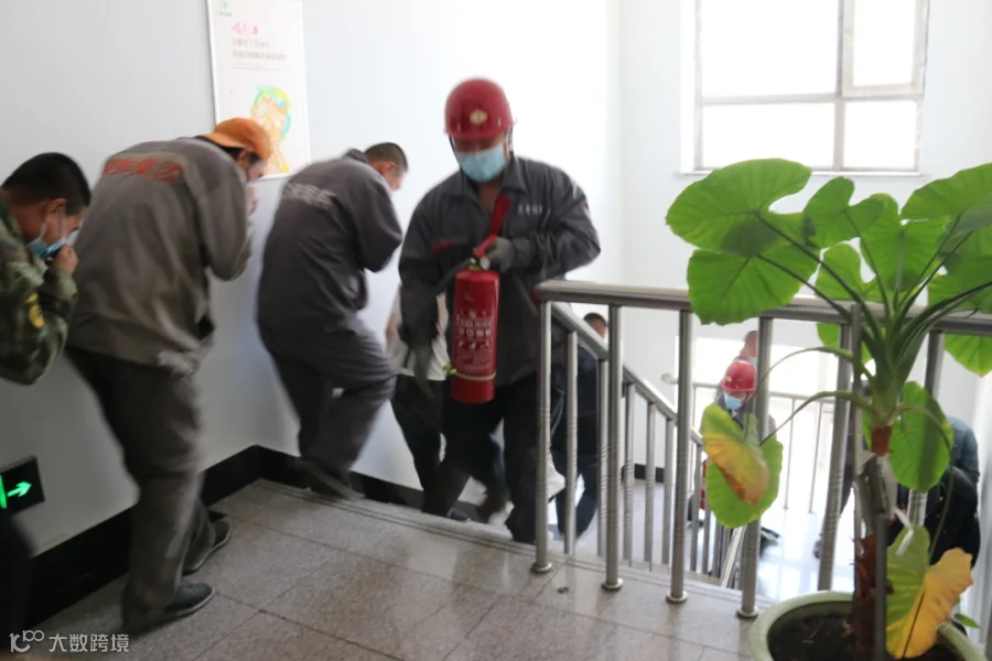 在发现火情的第一时间,王殿良经理及时掌控现场,疏散组各就各位,引导全体员工有序疏散,灭火组逆行而上,奔赴火点。逃出火点后各组及时清点人员,确保无遗漏。佩戴安全帽手拿灭火器为灭火组成员逆行而上。