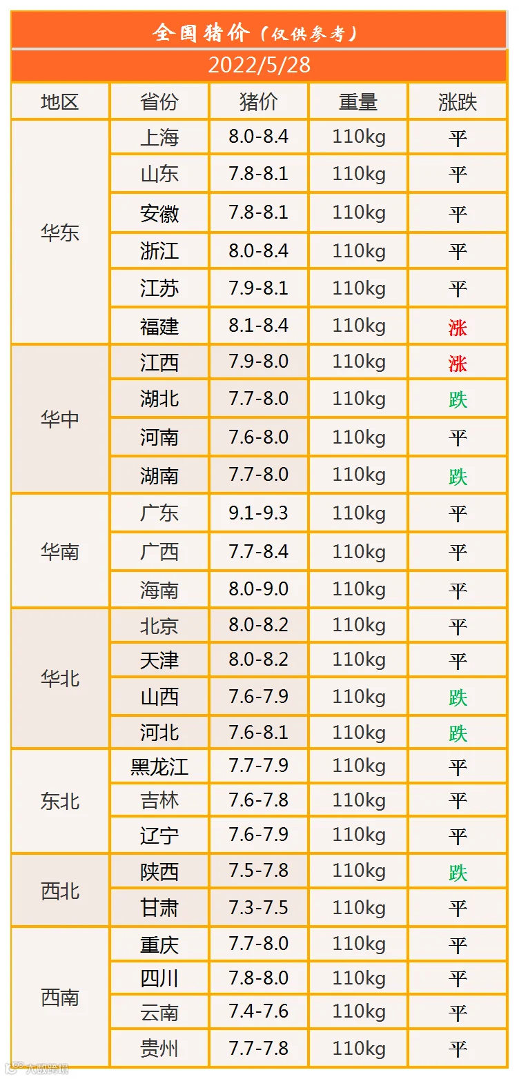 明日猪价2022年5月28日猪价信息