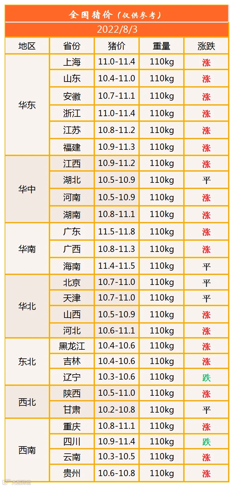 明日猪价2022年8月3日猪价信息