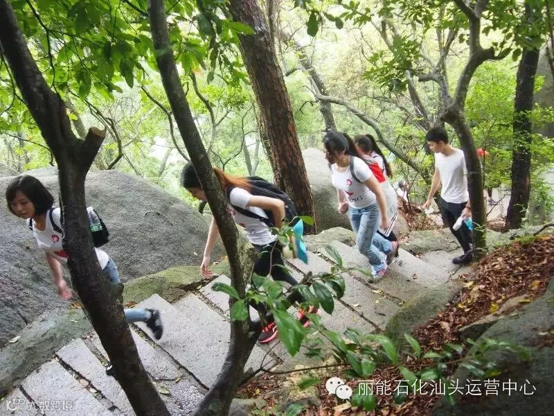 在到达景区门口后,再次集合列队,高喊口号:“丽能丽能,我信我能”,随后兵分三队,往各个方向出发,但分路不分家,大家的一致目的地都是飘然亭。