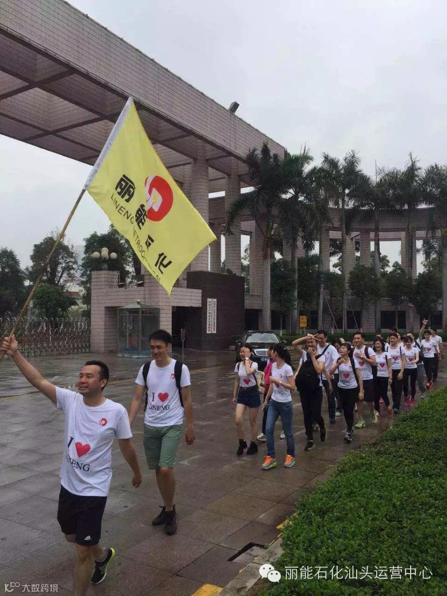 当天虽然下起小雨,路面湿滑,但徒步队伍在“丽能石化”旗帜的引领下依旧浩浩荡荡向前进发,一路疾行,展现了一支精锐之师的高昂士气。大家紧跟旗手,感觉疲累时,队员们彼此加油鼓劲;有队员落后时,前方队员适当放缓脚步,等待同伴归队后一起前行……经过一个小时的行进,队员们到达广场轮渡口。