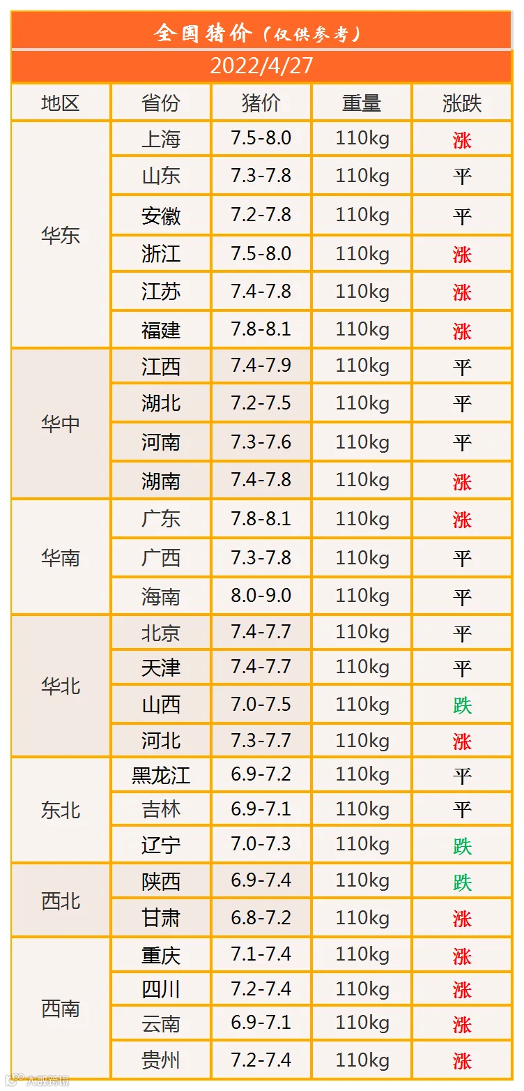 明日猪价2022年4月27日猪价信息