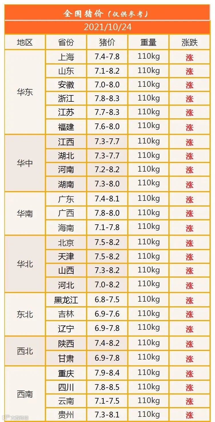 明日猪价2021年10月24日猪价信息