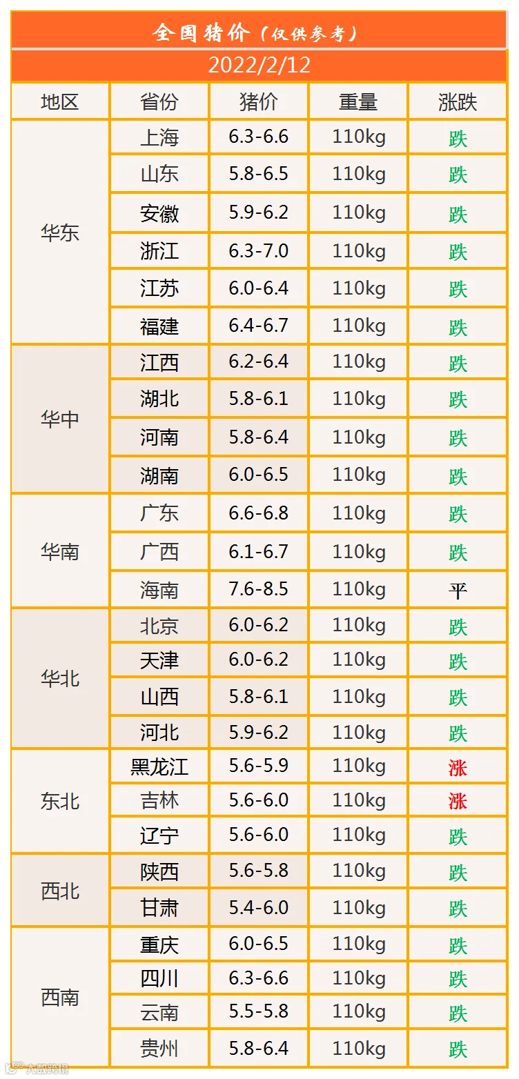 明日猪价2022年2月12日猪价信息
