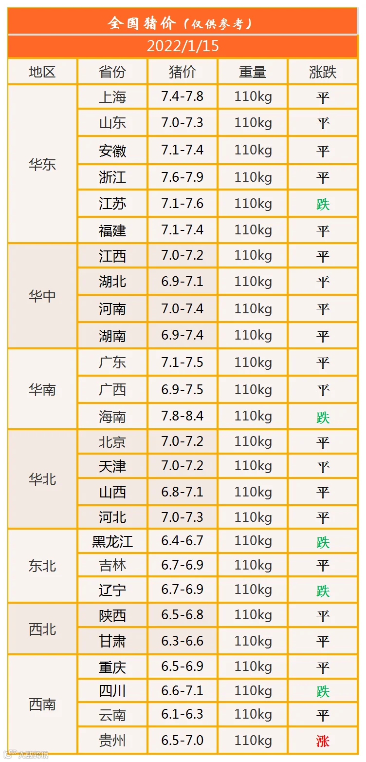 明日猪价2022年1月15日猪价信息