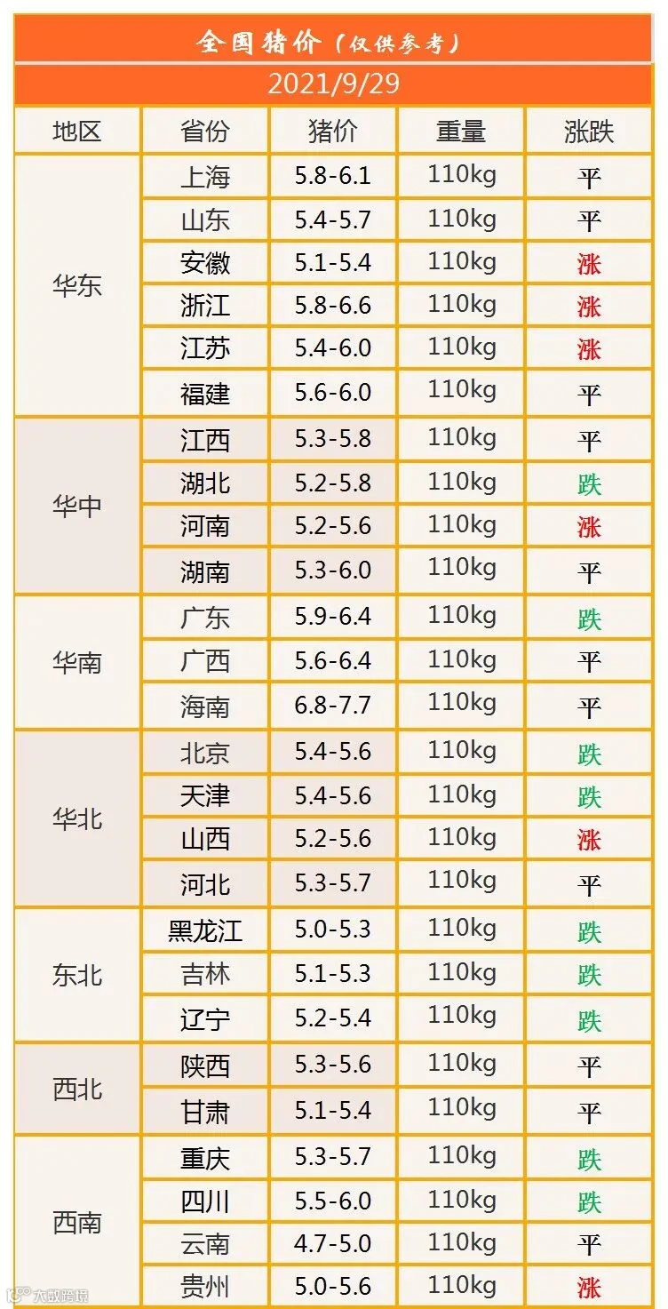 明日猪价2021年9月29日猪价信息