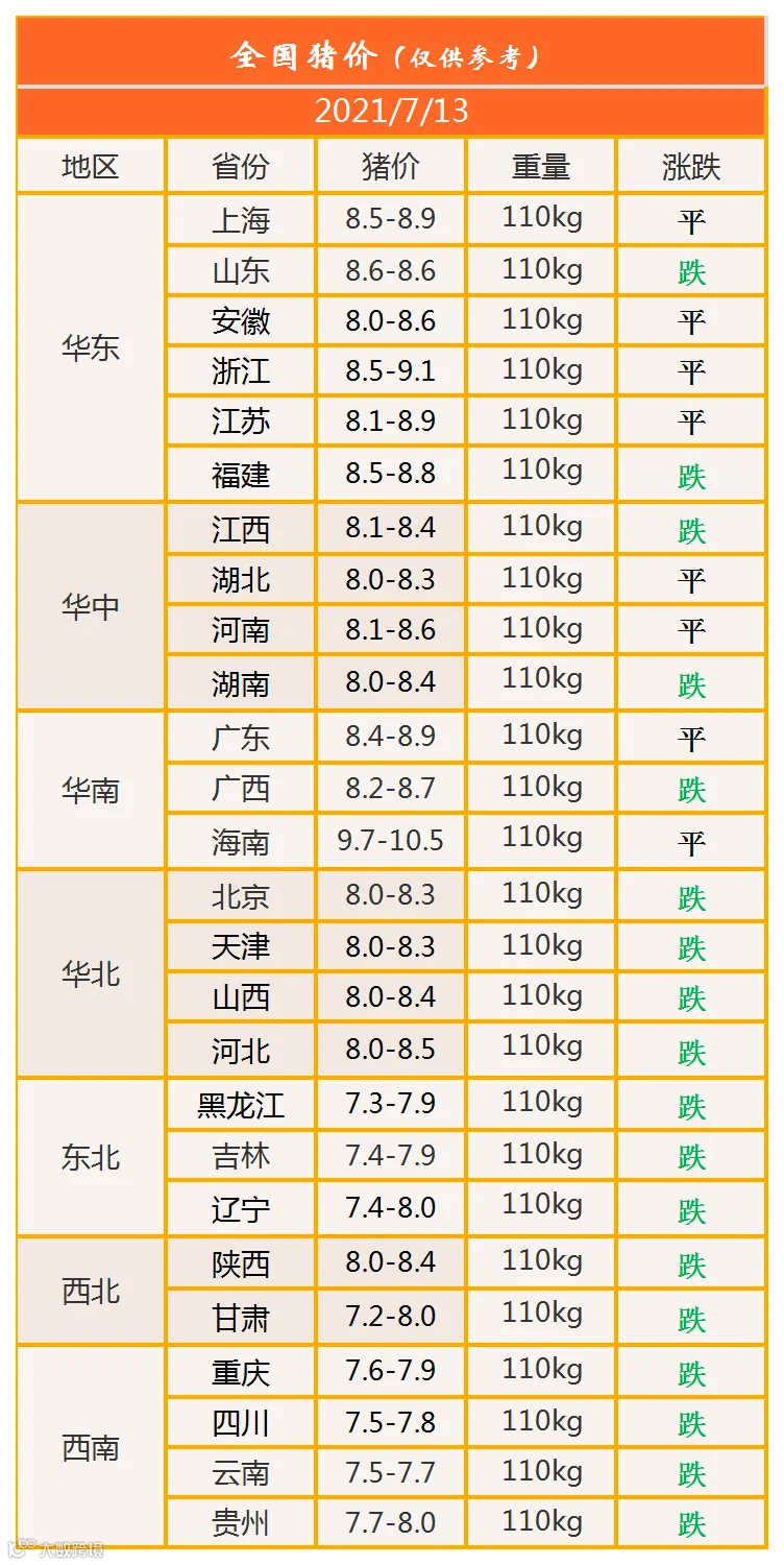 明日猪价2021年7月13日猪价信息