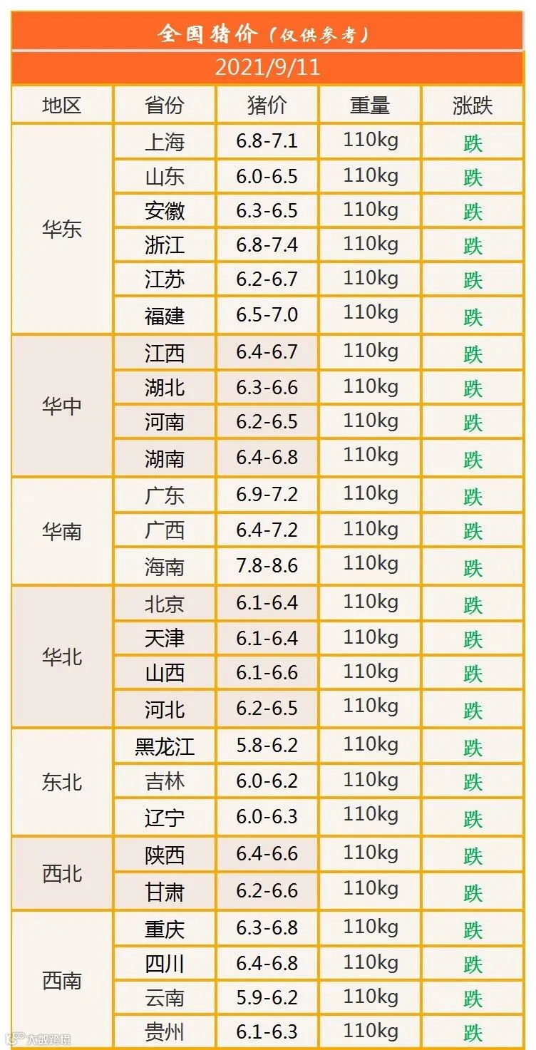 明日猪价2021年9月11日猪价信息
