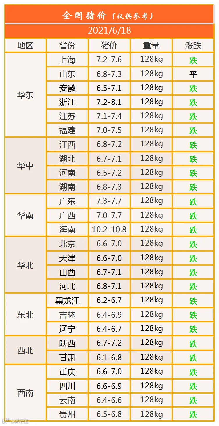 明日猪价2021年6月18日猪价信息