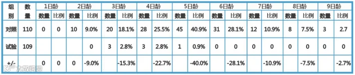 实验数据显示:与试验组对比,对照组拉稀要严重的多,尤其是出生后第5天,差异高达40%。