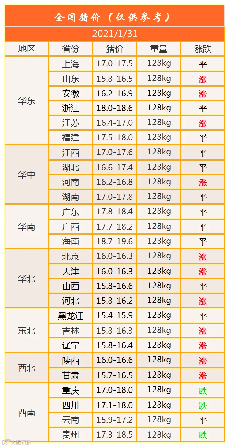 明日猪价2021年1月31日猪价信息
