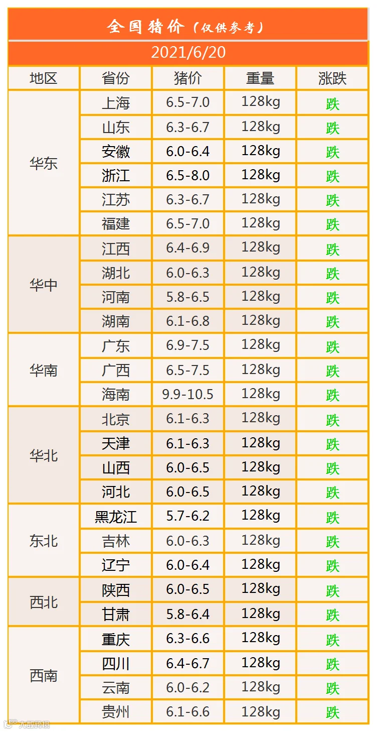 明日猪价2021年6月20日猪价信息