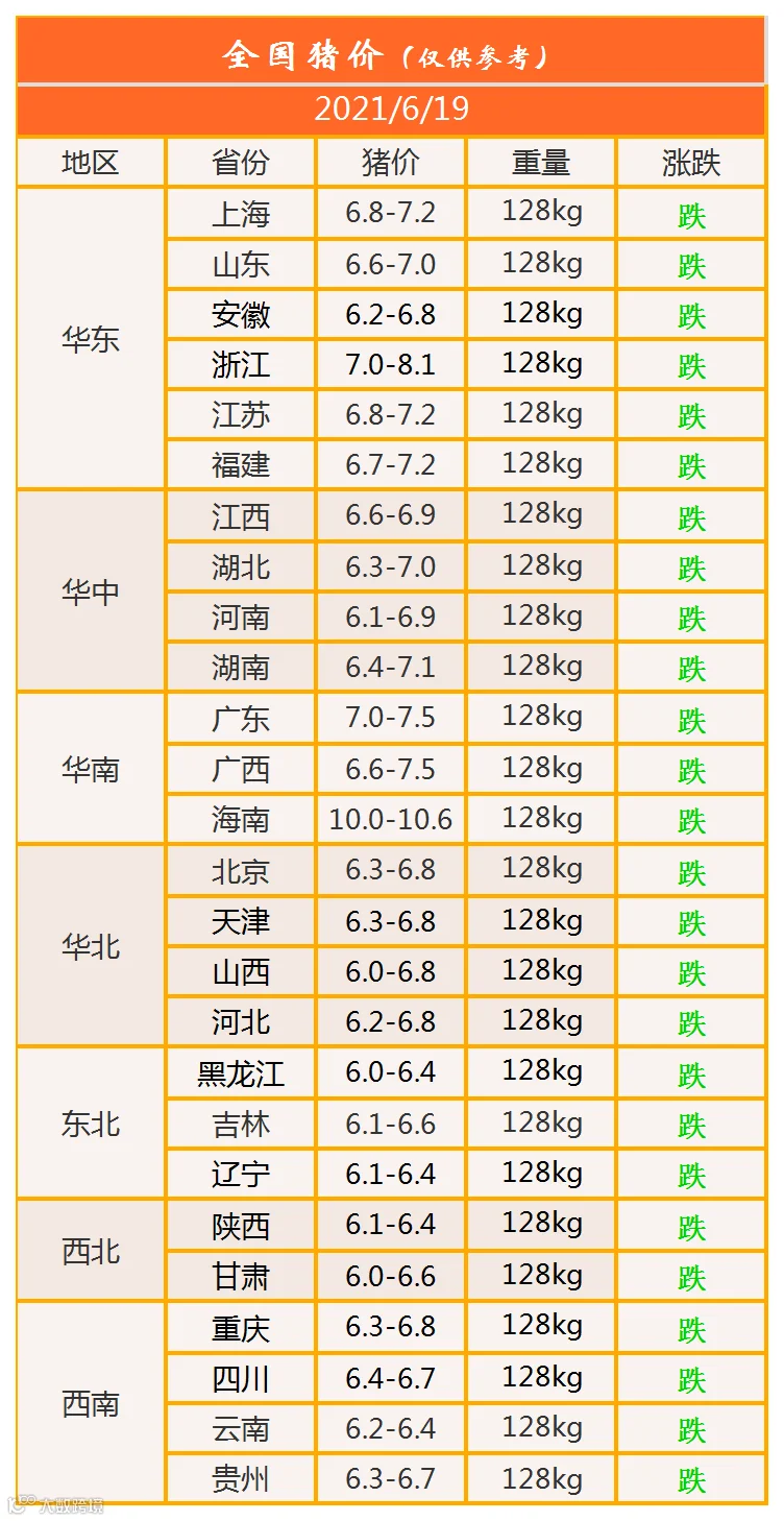 明日猪价2021年6月19日猪价信息
