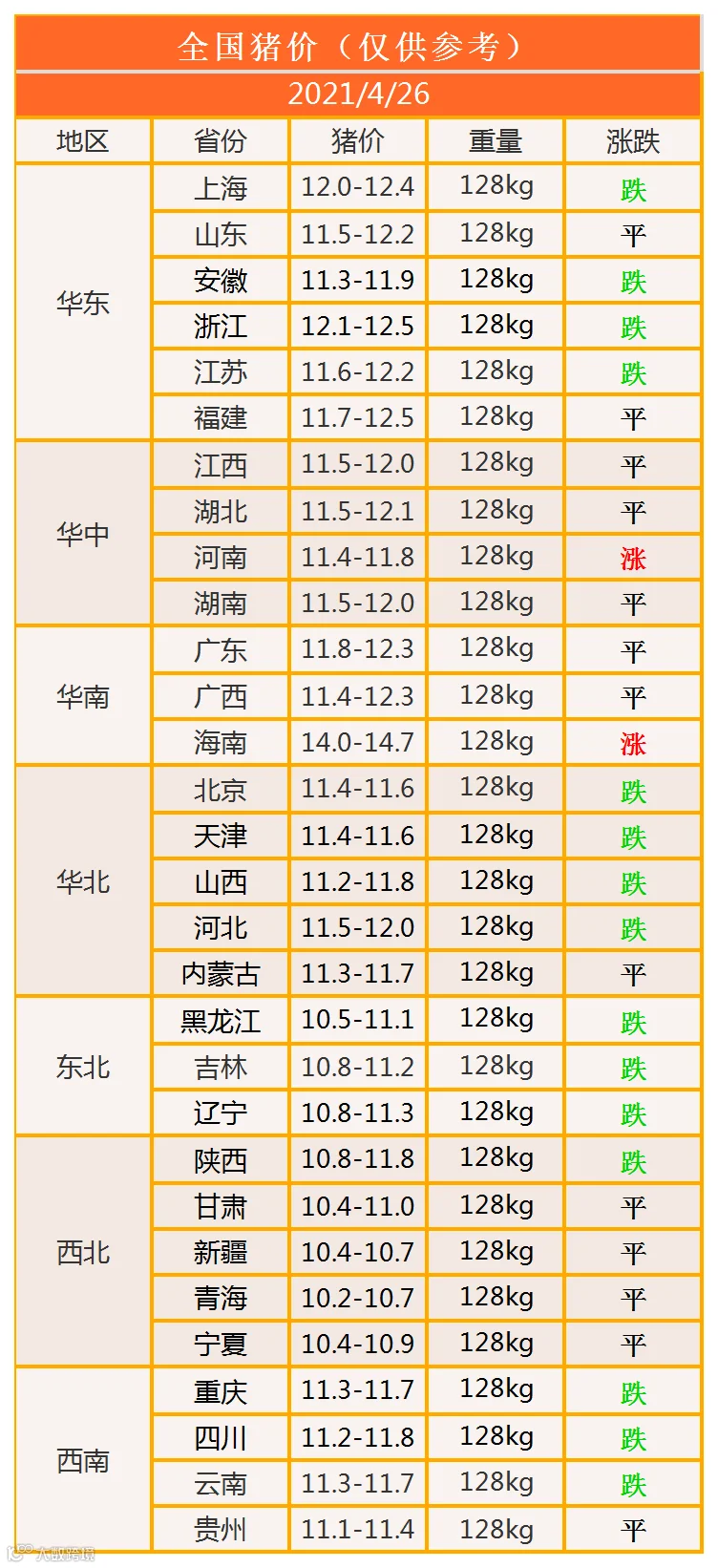 明日猪价2021年4月26日猪价信息