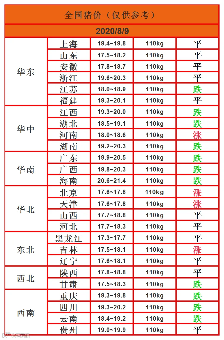 明日猪价2020年8月9日猪价信息