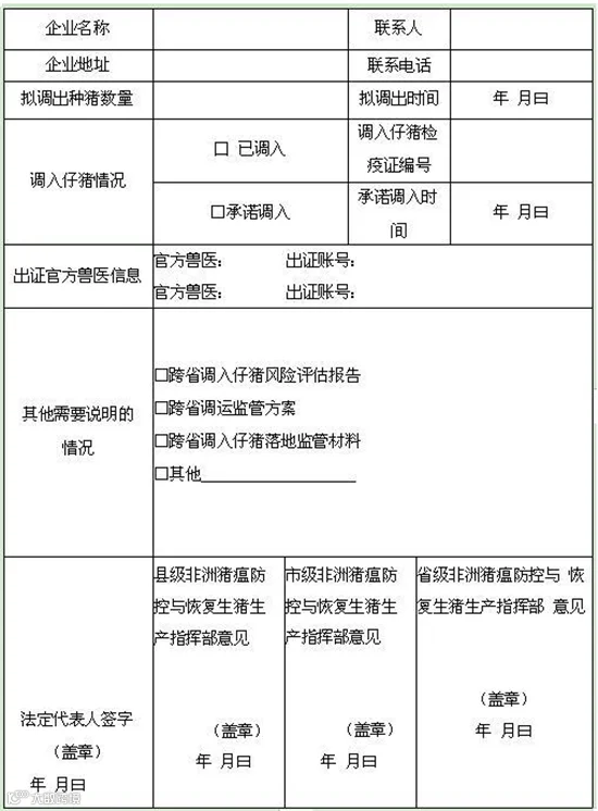 在种猪调出时,调出的企业需填写《跨省调出种猪备案表》,并提交相关佐证材料,向省动物卫生监督所申请调运相应数量猪只。
