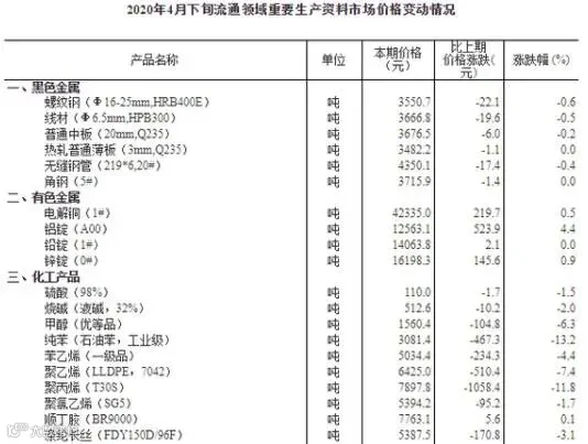 领鲜集团国家统计局据对24个省(区、市)流通领域9大类50种重要生产资料市场价格的监测显示,2020年4月下旬与4月中旬相比,10种产品价格上涨,36种下降,4种持平。其中生猪(外三元)价格为32.9元/千克,环比下降3.5%。