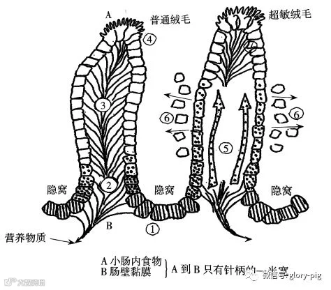 ·细菌会引起肠绒毛防御性地缩短,导致巨大的吸收面积(每头仔猪都有大约半个足球场那么大的吸收面积)可能被缩减至只有足球场禁区那么大。对营养物质的吸收能力大幅度下降。