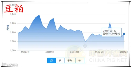 今日全国豆粕均价为3096元/吨,较昨日上涨6元/吨,较上周上涨1元/吨;
