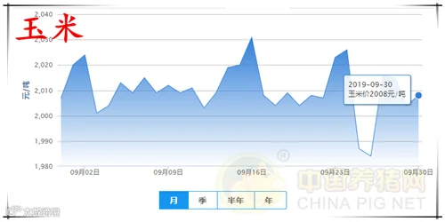 今日全国玉米均价为2008元/吨,较昨日上涨4元/吨,较上周下跌15元/吨;