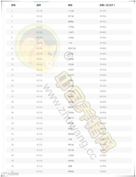 今日最高猪价:广东外三元均价为21.73元/公斤。今日最低猪价:青海外三元均价为13.00/公斤。