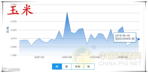 今日全国玉米均价为2009元/吨,较昨日下跌4元/吨,较上周下跌12元/吨;