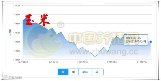 今日全国玉米均价为1960元/吨,较昨日持平,较上周下跌3元/吨。
