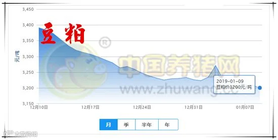 今日全国豆粕均价为3200元/吨,较昨日下跌8元/吨,较上周下跌34元/吨。