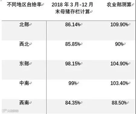 但经过对比数据之后发现,不同省份出栏量计算依照的是2017年出栏,未考虑2018年8月份之后疫情对不同省份母猪、生猪的产能影响。因此按照农业部发布的这个大区来看,2019年大区内供应难以达到表1中平衡的局面。
