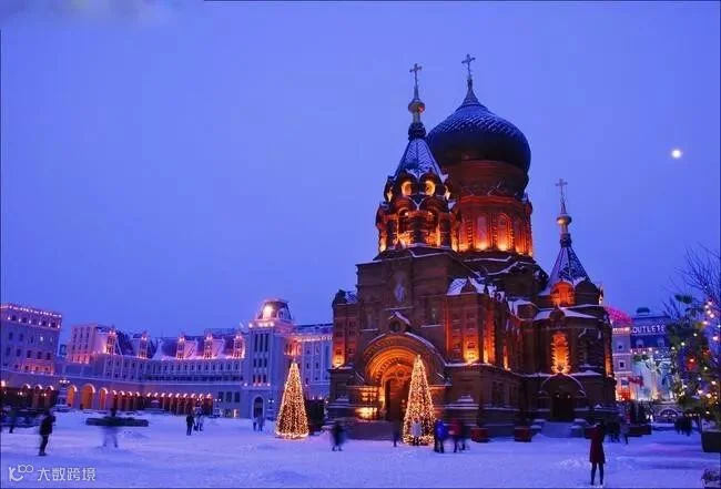 没有见过哈尔滨的雪,就等于没有来过哈尔滨,哈尔滨的冬天是梦幻的,如果用“美轮美奂”来形容是再恰当不过了。哈尔滨的独特不仅仅是冬天的雪,还有洋溢着外国风情多姿多彩的建筑,圣.索菲亚教堂 ---欧洲设计,始建于1907年,全木结构,占地面积为721平方米,通高53.35米,平面呈拉丁十字布局,是典型的拜占庭风格建筑,现在是国家4A级旅游景区、全国重点文物保护建筑。