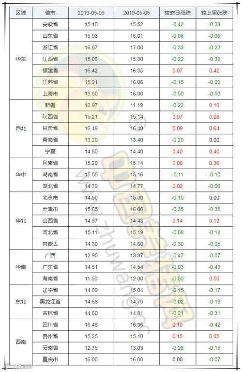 纵观全国,今日全国上涨地区依旧较少,下跌地区占多数。其中福建、陕西、甘肃、宁夏、河南、湖北、山西、四川、贵州上涨,其余各省市均出现一定幅度的下跌或持平。