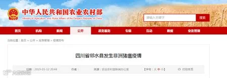 农业农村部新闻办公室3月12日发布,四川省广安市邻水县一车外地调入的生猪发生非洲猪瘟疫情。