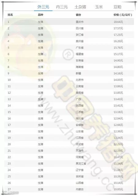 全国猪价排行
