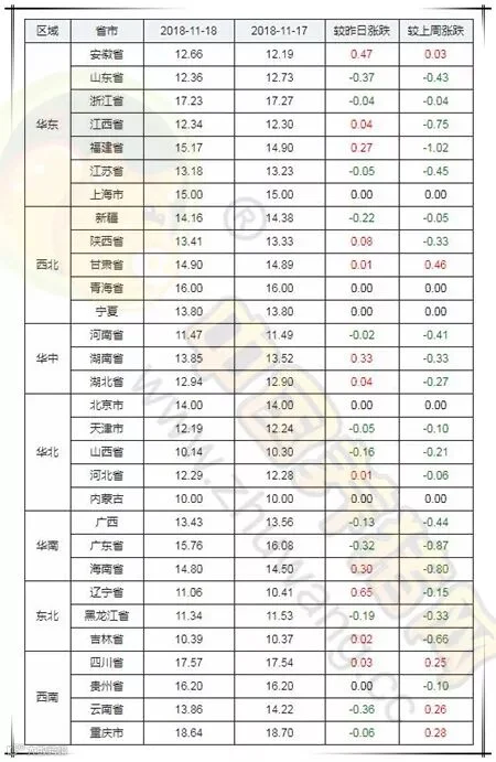 各省份猪价涨跌表