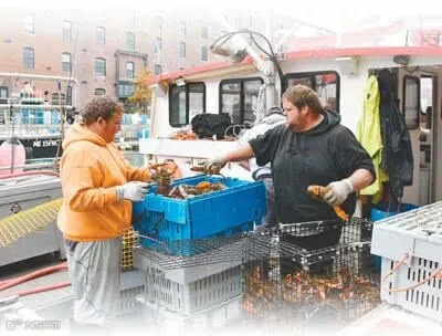 美国单方面挑起贸易争端后,出口中国的龙虾受到影响。图为2017年11月,缅因州渔民从船上卸下龙虾。本报记者 章念生摄