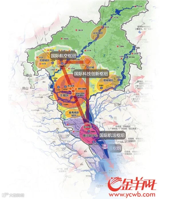 外围城区:花都城区、空港经济区、知识城、番禺南部城区、从化城区和增城城区