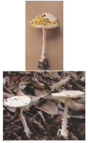 错误说法5:毒蘑菇往往有鳞片、粘液,菌杆上有菌托和菌环。