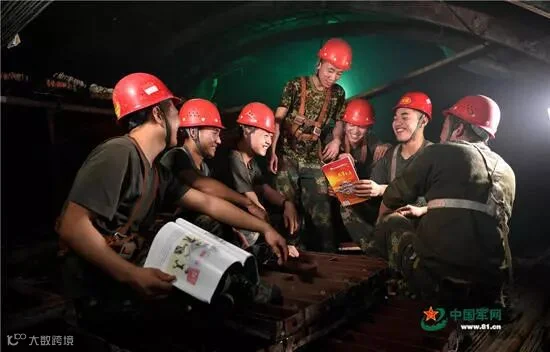 地宫深处,火箭军官兵集合工作实际,开展十九大报告讨论。(图片来源:中国军网)