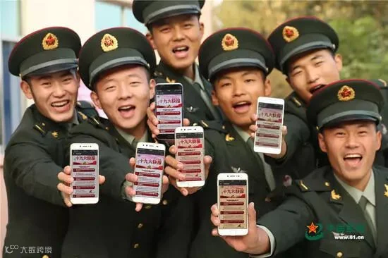 基层战士用手机平台学习十九大精神(图片来源:中国军网)