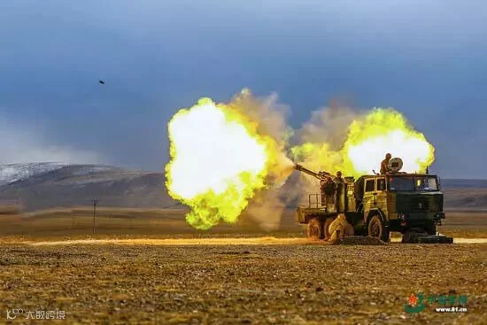 某型车载式榴弹炮实施火力打击。(图片来源:中国军网)