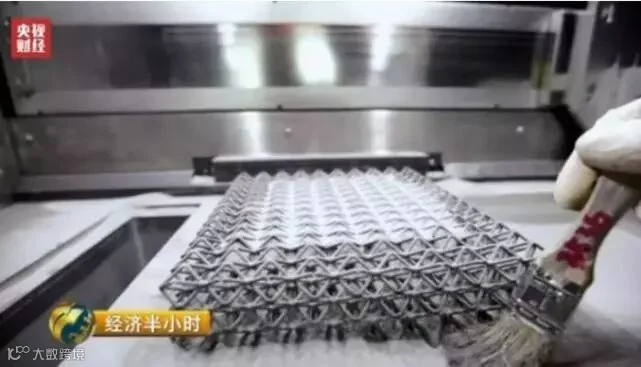 鑫精合激光科技发展有限公司副总经理孙峰:钛合金在我们冶金行业,是一种非常难成形的一种材料牌号,它的冶金工艺非常的复杂,通过我们这次3D打印工艺,把这么难做的一个钛合金,通过我们3D打印工艺,呈现出这样一个轻量化的结构来。