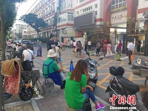资料图:中关村一小门外等候接孩子的家长 中新网记者 张尼 摄