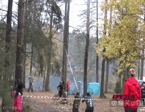 大哥,这树直直倒下,你就不会往旁边跑一下?