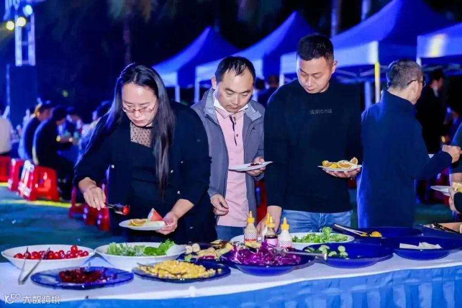 文艺演出现场采取冷餐形式,安排多种特色餐食和饮品,参会嘉宾们在帐篷下和自由观景区欣赏节目的同时开展自由交流,畅谈当前养猪业及未来发展,嘉宾们同时就高校、科研单位和企业之间的联动方法与实践做法开展讨论。此次相聚不易,嘉宾们推杯换盏,享受星光下的美好。