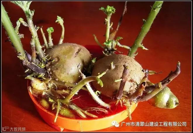 每个土豆上面都会有好几个小芽萌芽,有的还长出来了一些张牙舞爪的白生生的小根,这个时候就可以进行栽种了。