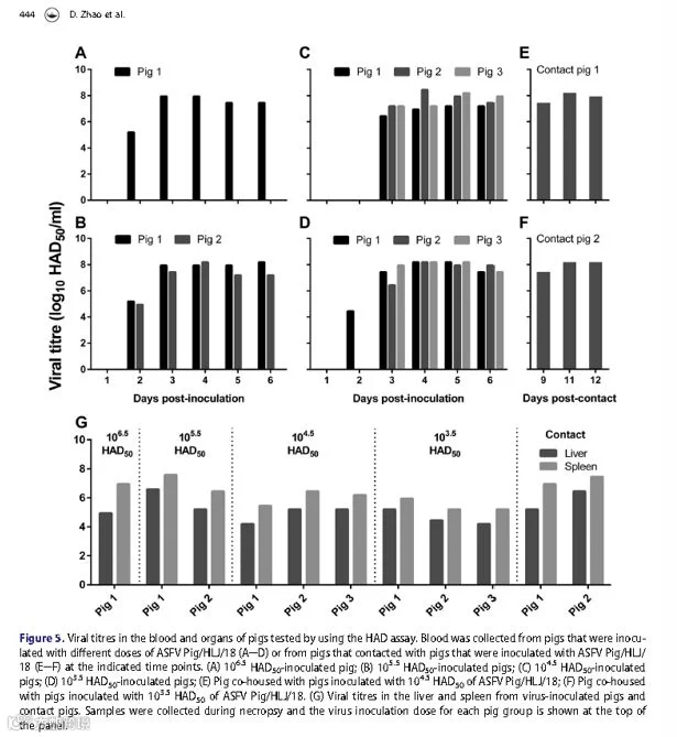 非瘟疫情发生后哈尔滨兽医研究所迅速分离出我国第一株非洲猪瘟病毒株(Pig/HLJ/18株),人工接种致死率100%,表现为急性出血性变化,基因型属于基因Ⅱ型,与格鲁吉亚分离株同源性接近100%。对Pig/HLJ/18株感染病死猪半数致死量(PLD50)测定结果显示,病死猪每毫升血液中含PLD50病毒量达100万以上,每克组织中含PLD50病毒量达10万以上,病毒含量惊人,因此建议猪场如发现疑似非洲猪瘟症状,为避免污染场内环境和人员,请勿在猪场内剖检,尽量求助实验室。
