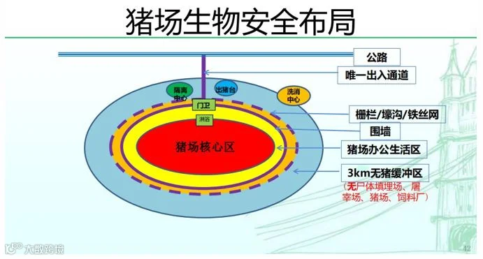 在没有有效疫苗的前提下,生物安全是最重要的防线,但是人的意识、政策等应该是第一道防线,疫情面前我们要做到人人重视、方向统一,才能有效的做好非洲猪瘟的防控。最后一道防线应该是猪本身的自身免疫力,在做好生物安全防控的基础上,必须做好主要疾病的基础免疫。