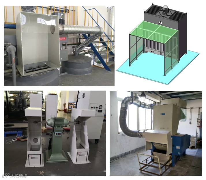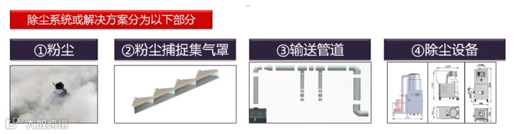 通常一套除尘系统或者解决方案都会包括粉尘集气罩、粉尘输送管道以及相应的除尘设备。